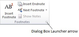 - Click the Dialog Box Launcher arrow in the corner of the Footnotes group.